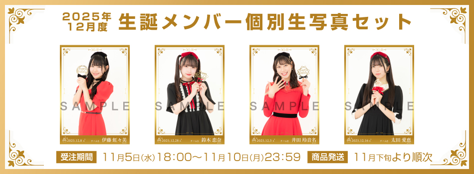 2025年12月に誕生日を迎えるメンバーの生写真セットの販売を下記スケジュールにて行います。