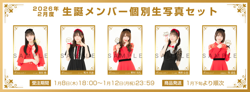 2026年2月に誕生日を迎えるメンバーの生写真セットの販売を下記スケジュールにて行います。