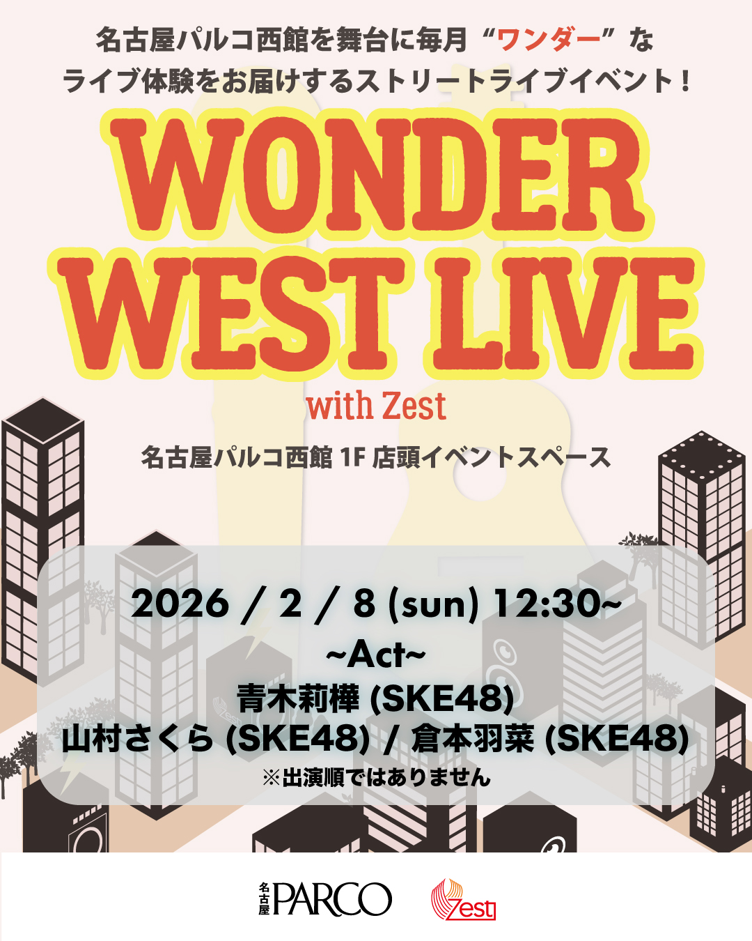 2月8日(日)名古屋PARCO西館1F店頭イベントスペースにて「WONDER WEST LIVE with ZEST vol.6」開催決定!