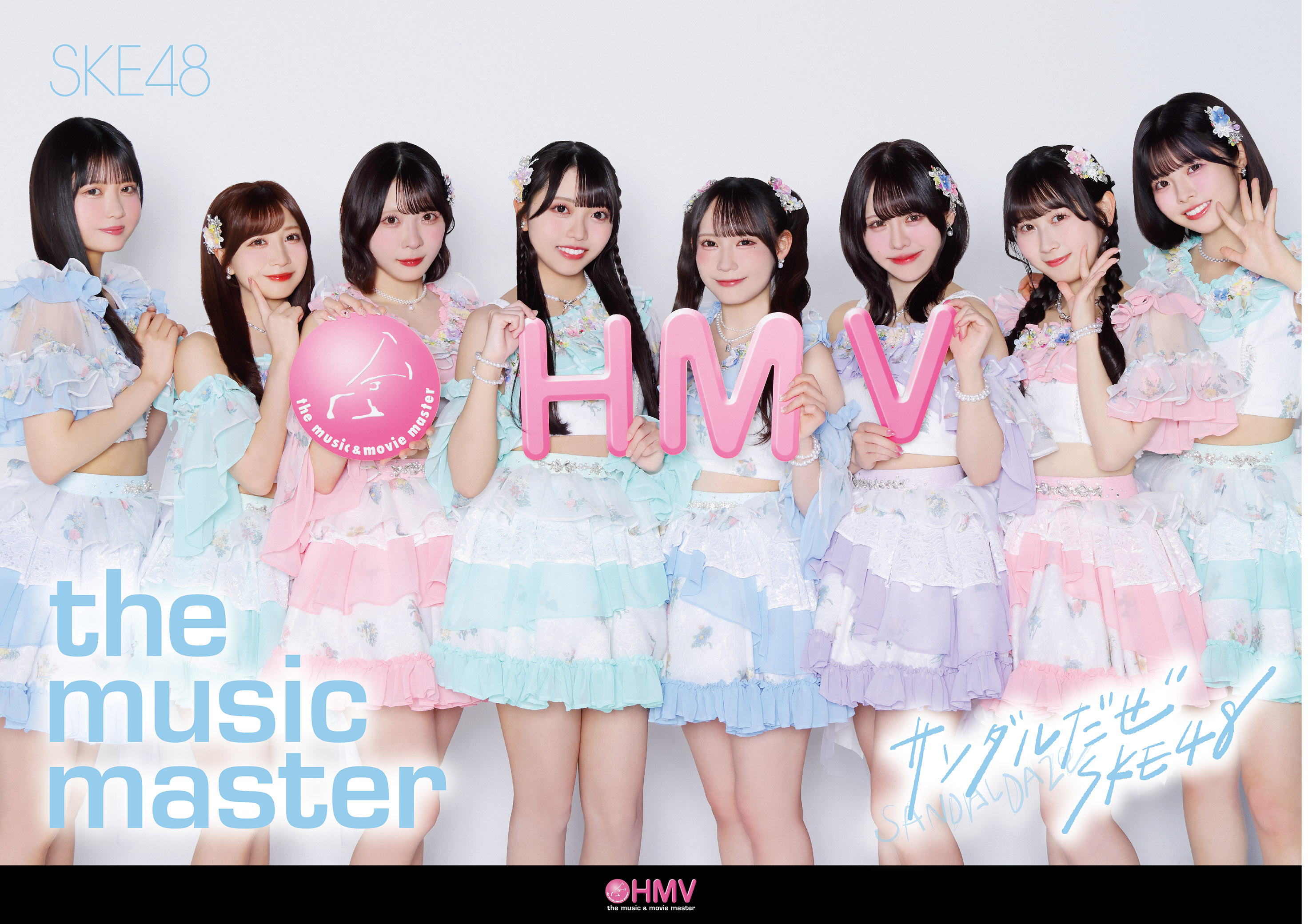 荒野姫楓、伊藤実希、井上瑠夏、佐藤佳穂、浅井裕華、太田彩夏、大村杏、森本くるみの撮りおろし写真による「SKE48 × HMV」コラボポスターを掲出いたします。