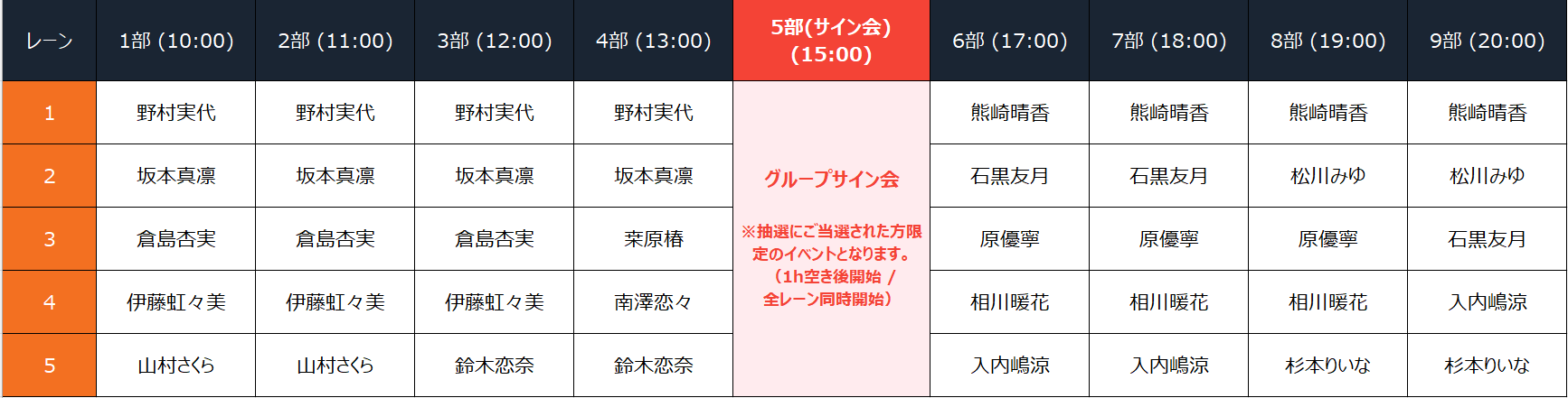 【Wチャンス「プレミアム・グループサイン会」組み合わせ】