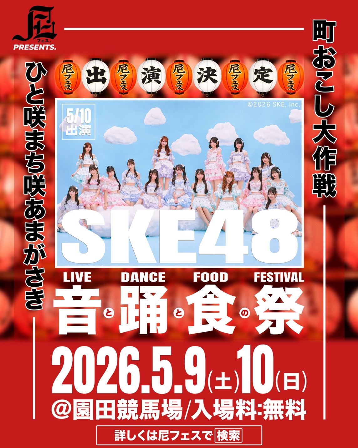 5月9日(土)、10日(日)の2日間、兵庫・園田競馬場 第三駐車場内特設会場で開催される「尼フェス “町おこし大作戦” 2026」への出演が決定しました!